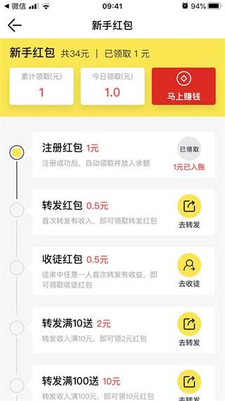 (注册1元,转发红包0.5;收徒红包0.5;转发满10/100/200送2/10/20元)