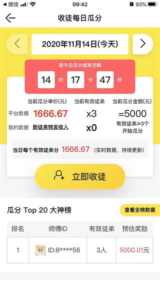 每天有效徒弟≥3个,即可参与当天的瓜分