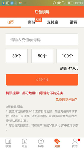赚到的钱可兑换成 话费 Q币 支付宝 还有商品等 下图是我的到账图 红包锁屏信誉是挺不错的
