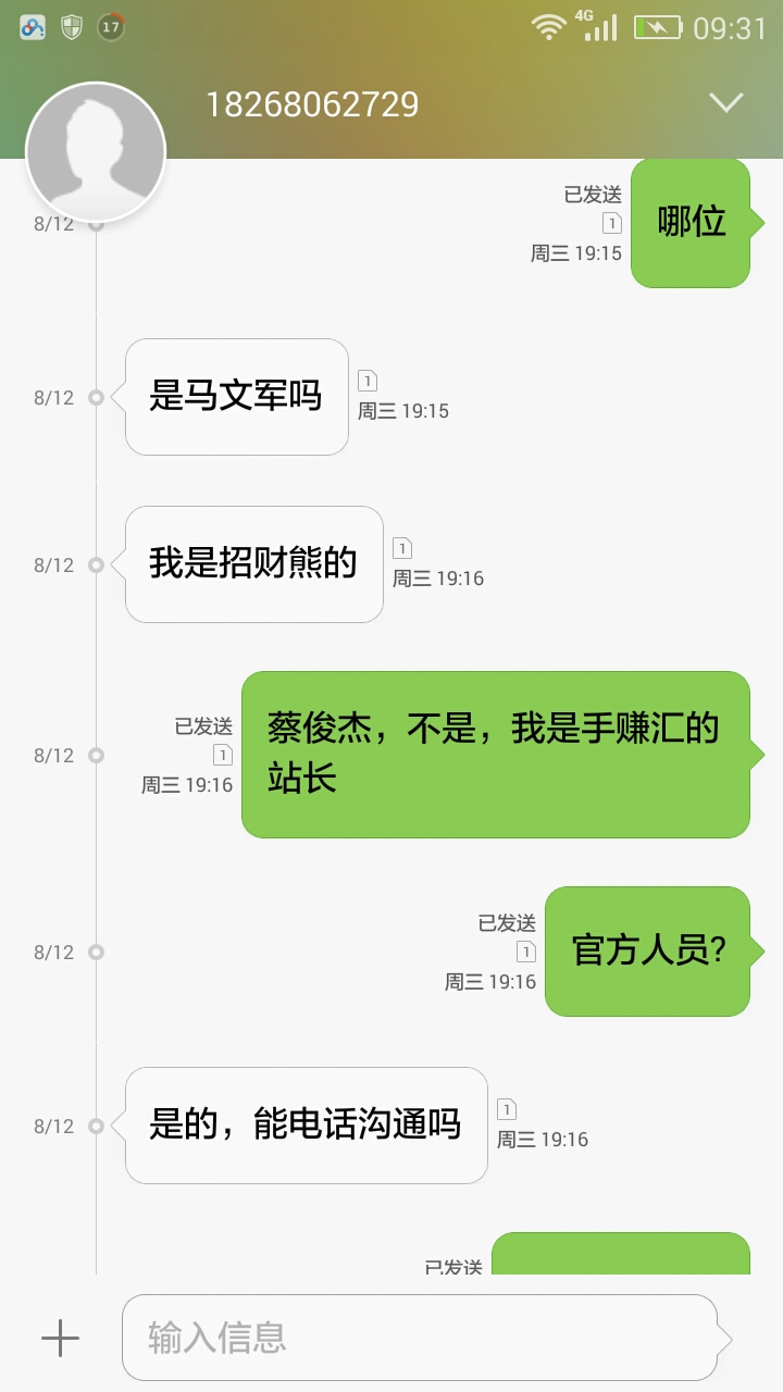 直到昨天(8.12)有人发了个聊天截图到群里,我看了下里面有招财熊内部人员的QQ,于是加的他QQ,和他说了提现不到账的原因,然后我把会员账号发给他,谁知他说没有这个账号,看到一段时间后没有回复我,我就把他拉黑名单了。