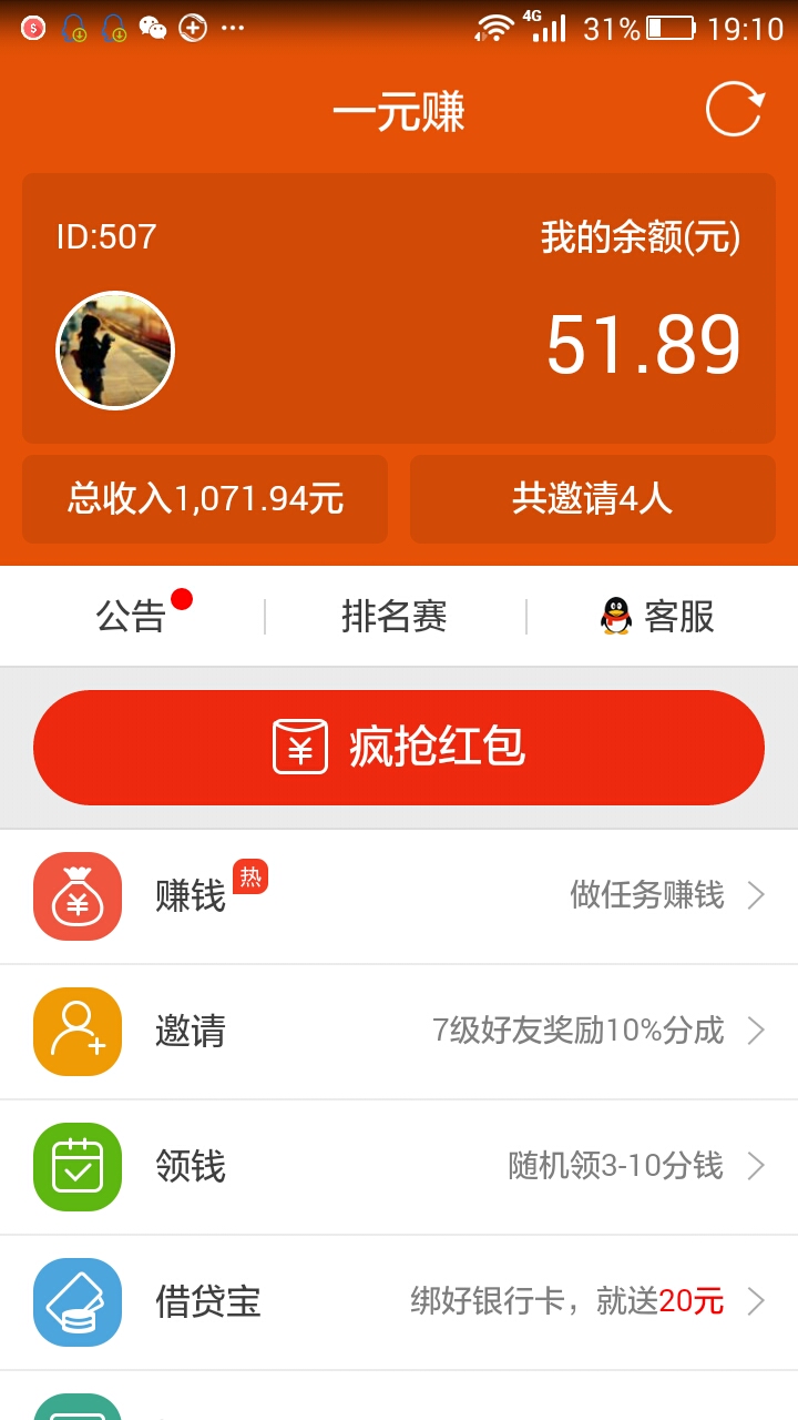 一元赚,新出排行奖励,每日红包。 活动金额不小哦!