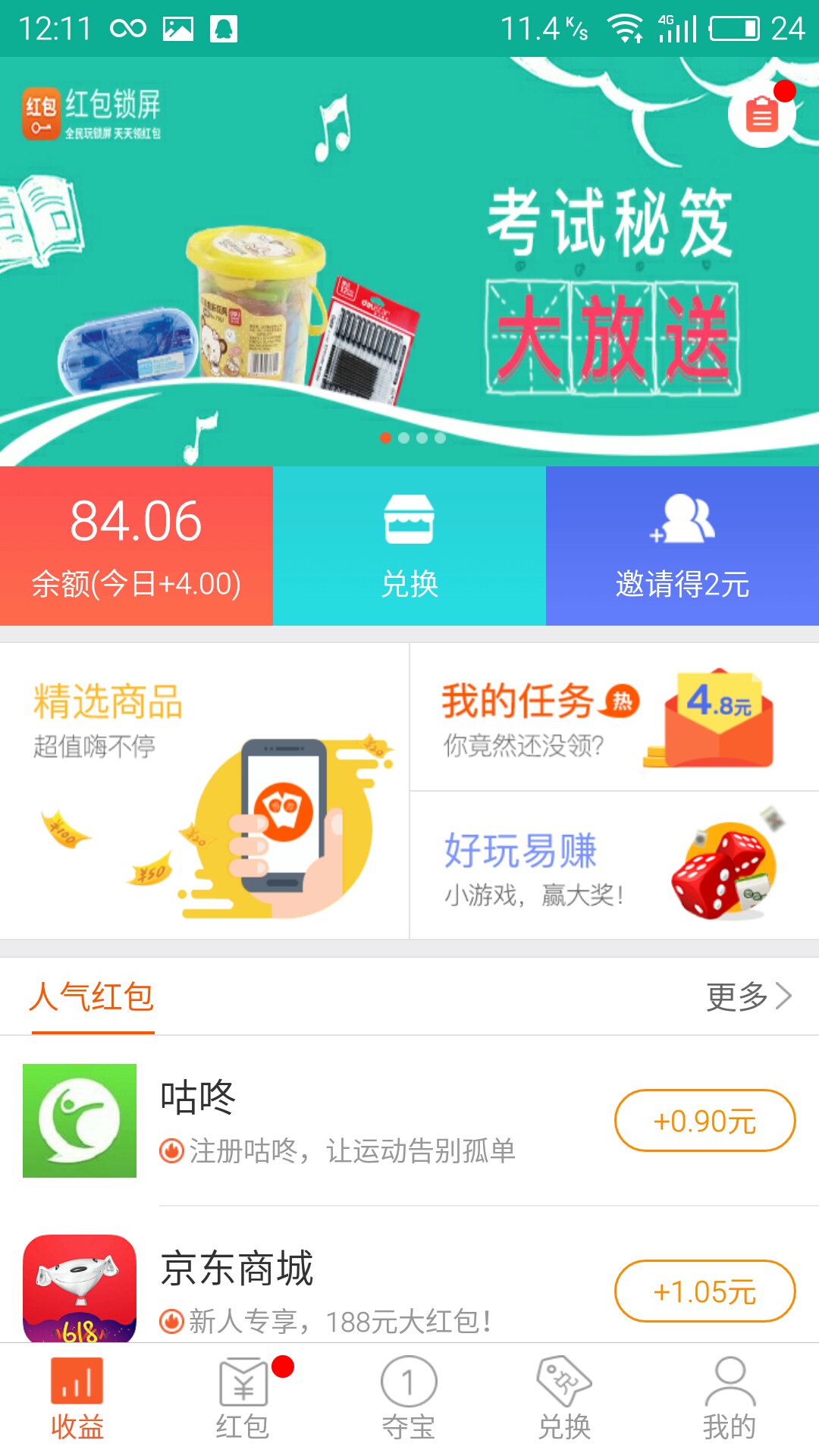 1.红包锁屏,这个手赚我玩了1年,赚了5000多元,对于一个学生党来说是一笔不错的收入