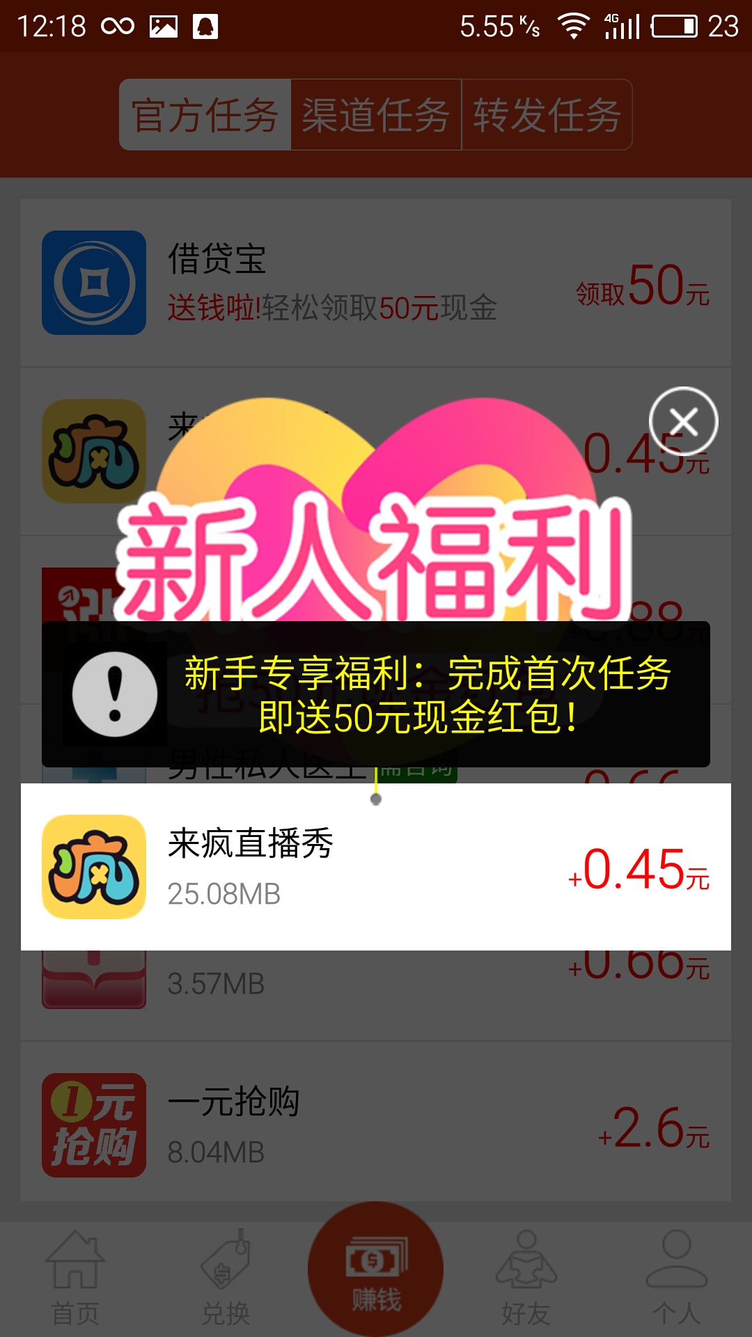 下载注册就送2元,首次邀请下线奖励4元,之后邀请一个安卓下线奖励2元,苹果用户4元。