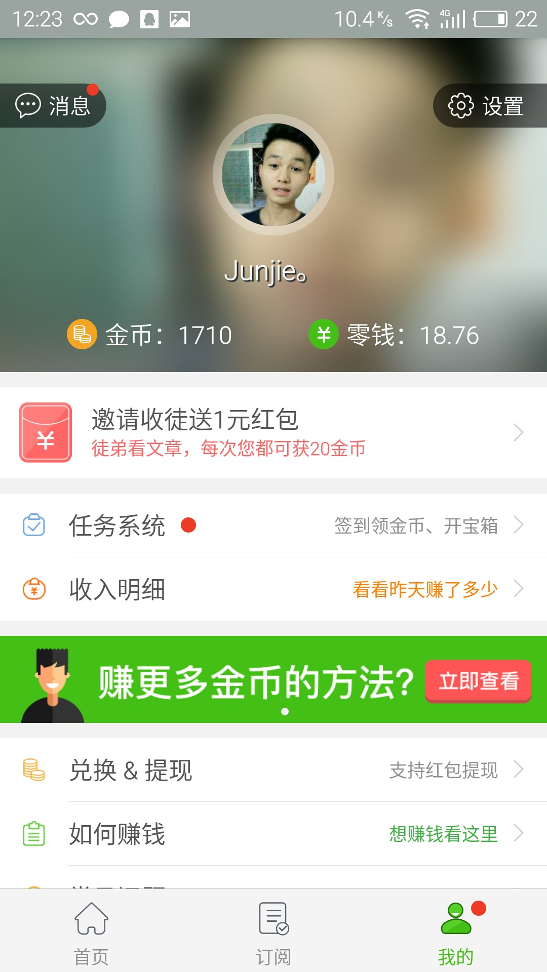 3.趣看,一款看新闻头条也能赚钱的手赚app,已提现好几百,成功邀请一名好友玩趣看奖励1元,徒弟再