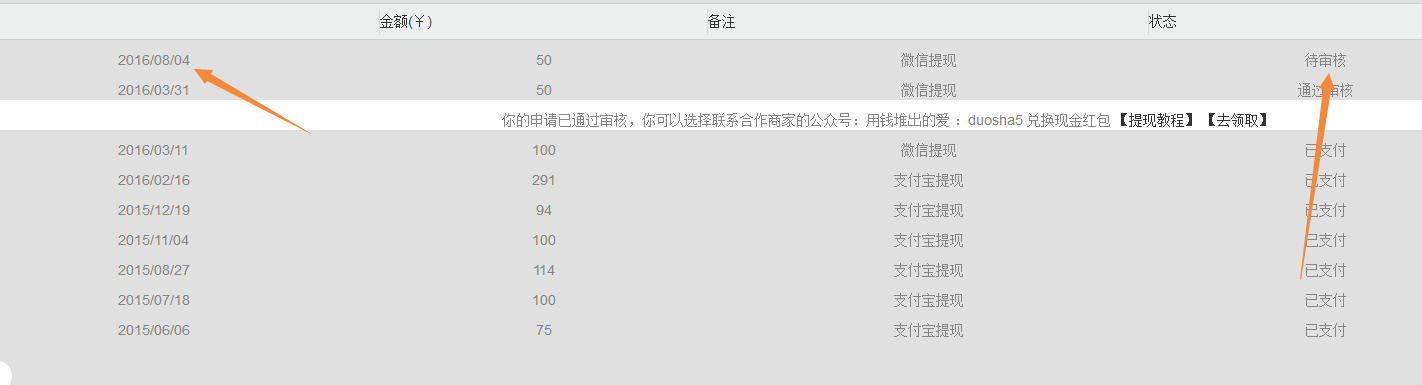 转发网转发赚钱平台的元老,信誉还是不错的,提现3天左右就会到账,可是最近小编在本月4号(2016.08.04),提现到现在没有收到打款信息,然后小编就登陆转发网的会员中心,发现本次申请提现的记录居然还没有审核,难道转发网也要跑路了吗?目前转发网的网站是正常运营的,本站也从中赚了一些钱,希望此平台不要倒闭吧。