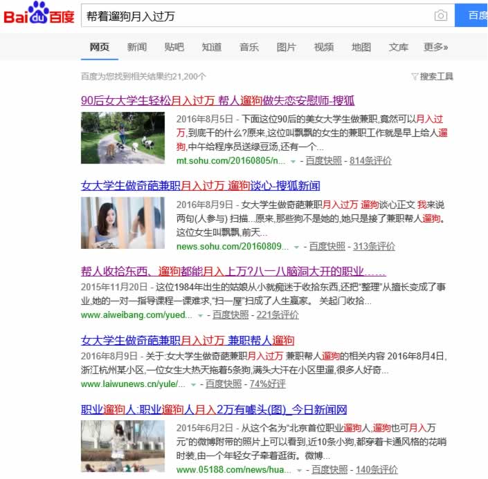 前一段时间的女大学生帮人遛狗月入过万的新闻,大家应该都知道。