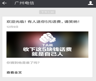 广州地区的话费活动,微信扫描关注广州电信,进入推送消息>输入手机号,5元话费秒到,广州用户移动,联通,电信都可以。