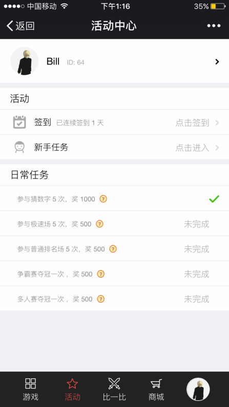 除了获得排名的奖励,在37117每天可以通过签到和每日任务稳定的获得柒点