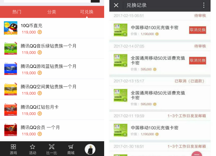 然后玩游戏和做任务积累了柒点就可以去兑换了。最低是10w柒点兑换,基本玩2天游戏就可以积累到了。