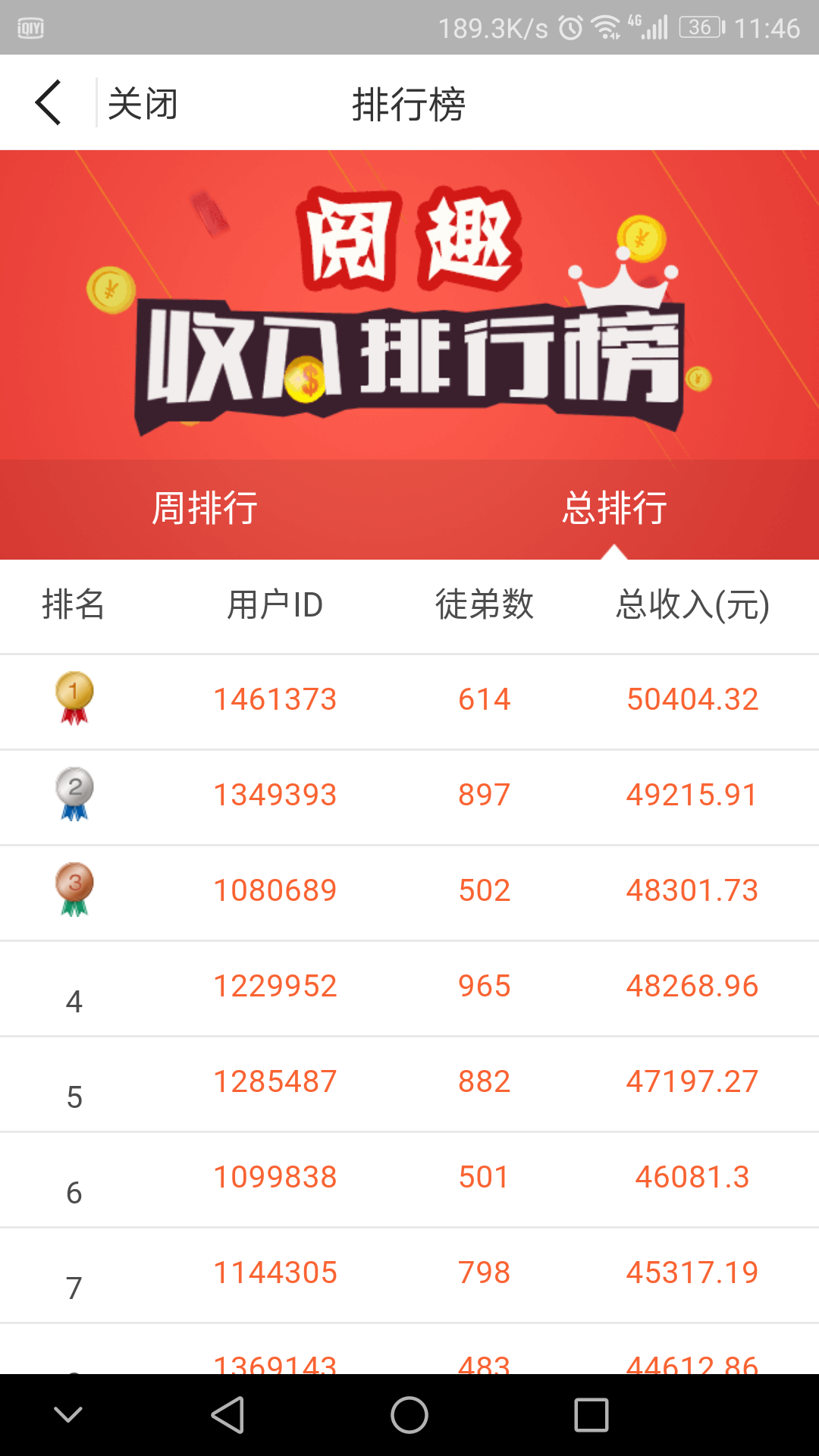 阅趣app推出不久,已经有大量玩家在里面赚取了大量零用钱,最高的玩家他的都已经达到5万了,可见阅趣app赚钱也是很轻松的,不过可以看出这些玩家都是玩邀请的。