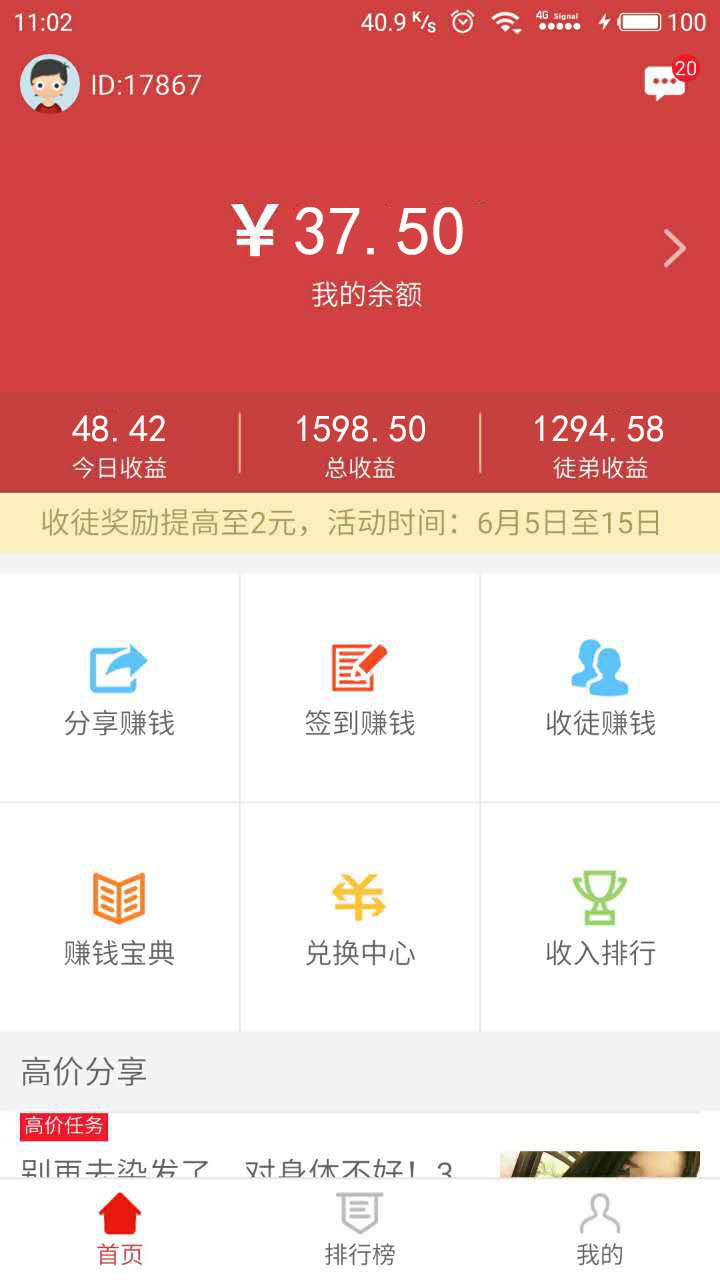 爱转发app,提现到账1500,说说我的赚钱方法,做了这么久的手机赚钱,见过了形形色色的手赚平台!早已不再感冒一款新平台的诞生,但最近偶然接触了一款名为“爱转发”的app,却足足燃到了我!