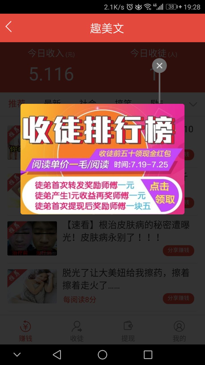 今天,各大转发赚钱平台都开启了收徒冲榜的活动,活动准备了大量现金,并且名额有50个,对于专门收徒来赚钱的人来说,这次开启的是福利,随随便便都能进前50名。活动起始时间:(7.19 - 7.25),用户们有6天的冲榜时间。(这些平台小编已经赚了几百上千了,提现都到账了,最低10元起提现)