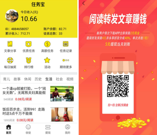 任务宝这款软件一直做得不错,最近重新上线,提高收益积分,提高收徒收益,让你利用课余时间体验任务宝月赚1000 零用钱!