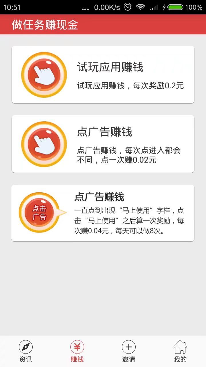 阅读赚钱、点广告赚钱、试玩应用赚钱、提现当天到账、十一月份开通微信提现、11月份支持1元提现