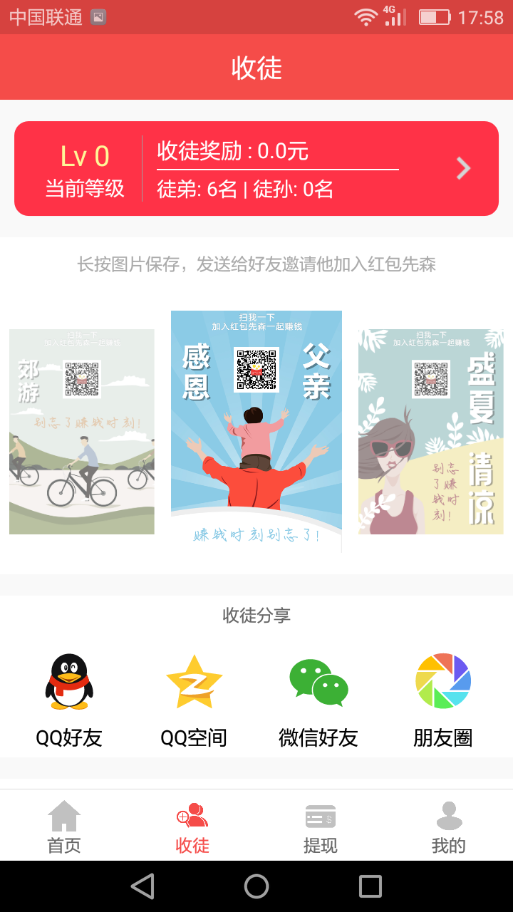 【收徒奖励】奖励无上限,徒弟徒孙做任务赚钱金额的25%收入归您,躺着也能赚钱;