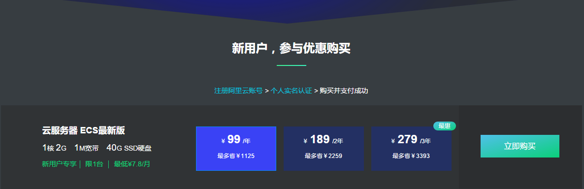 99即可元购买阿里云ECS服务器1年,让建站触手可及