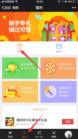 2、进入【37117】公众号页面点击下方【福利】—【签到】