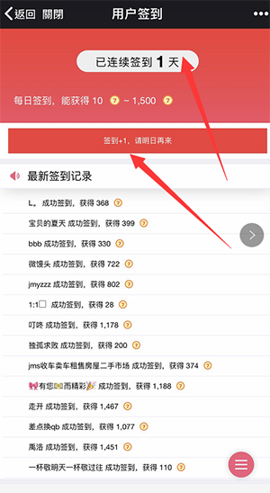 活动内容:报名成功后连续签到三天即可获得1元现金