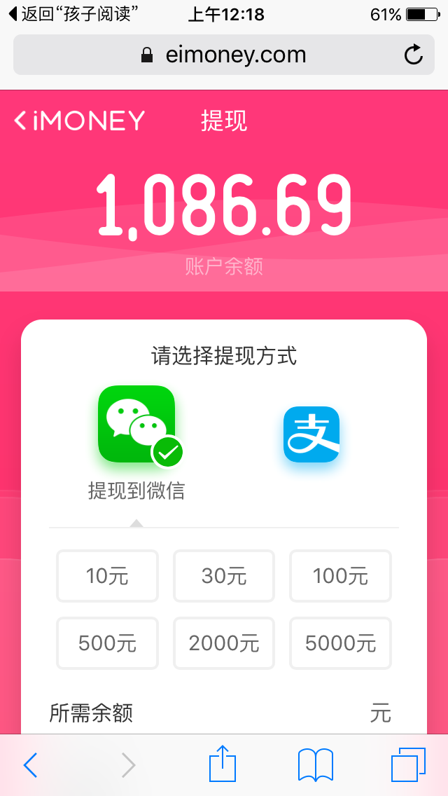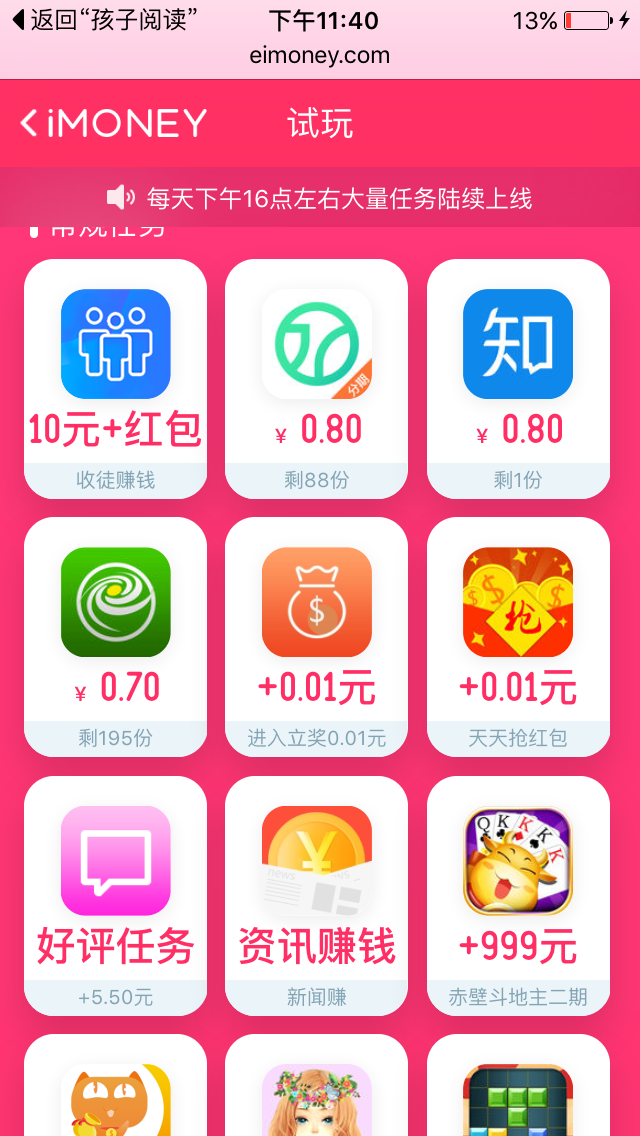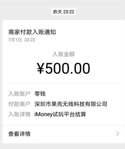 ps:用户通过imoney平台下载一些和imoey合作的app,然后体验几分钟就有钱到账啦,也就是广告主花钱找imoney合作推广,广告主需要量,imoney有量,自此达成合作。合作成功每一次试玩平台都会抽取部分佣金给用户当做试玩奖励。