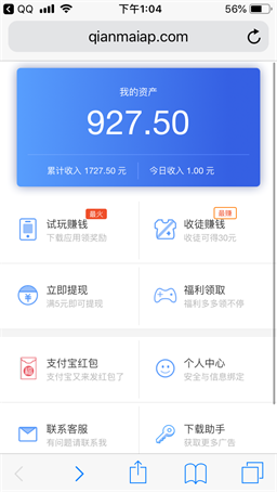 试玩赚钱任务,单价也是挺不错的,达到1元左右一个任务单价,每天做几个一个月下来也是积累了不少钱。