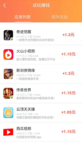 (3)5元提现:试玩应用单价1.5元至4元不等,5元就能提现。