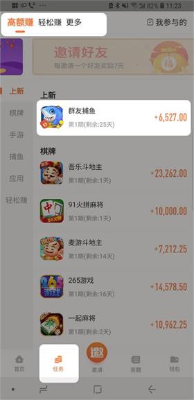 点击主页“高额任务”进入任务页;选择一个任务,进入详情页。