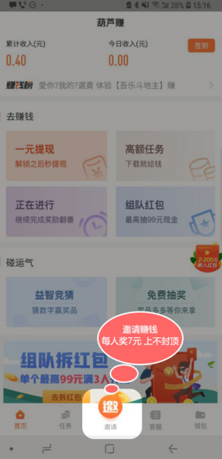 赚钱App,没有复杂的理财投资、不支付任何费用,不限时间地点,有手机就能随时随地赚点零花钱~时间就是金钱,来葫芦赚把你的碎片时间变成钱~