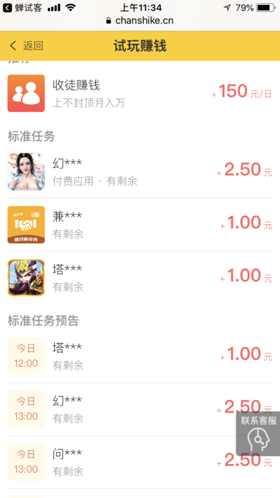 赚钱任务单价1元起。蝉试客试玩体验有趣又好玩的app还能有收益。