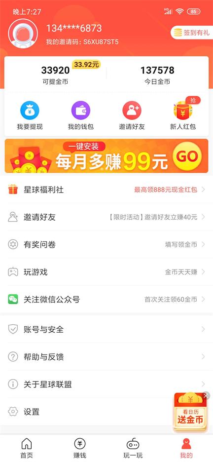 手机赚钱的app,推荐安卓手机系统下载,主页海量在线兼职任务,高收益,易操作!星球联盟本站操作推广了好一段时间了,每天都有100来元的进账,都是邀请好友赚的,提现速度相对于刚上线的时候,一般1-2天就可以到账。