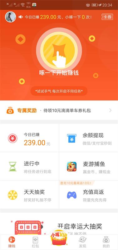 3.小啄赚钱:啄一下开始赚钱,每次的任务不同,爽歪歪。