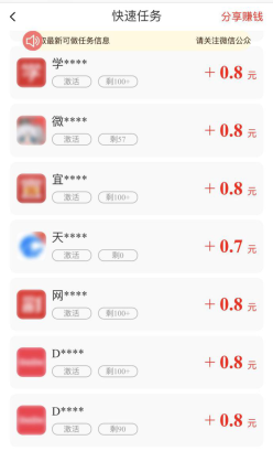 (3)25元提现:试玩应用单价0.7元至0.8元不等,25元就能提现。
