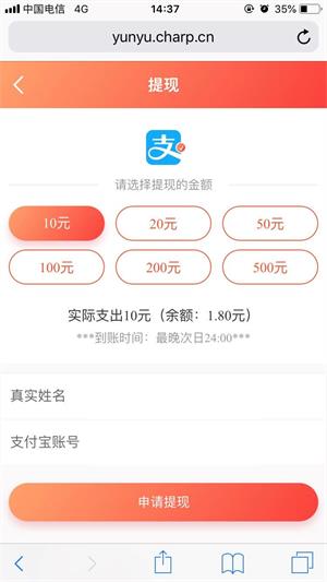 另外,咱们比较关注的就是提现问题,有钱赚目前支持支付宝提现,