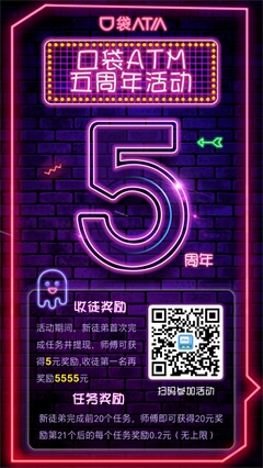 口袋ATM豪掷百万感恩回馈新老用户,现在邀请新用户就能立马提现5元现金,徒弟做任务除了获得奖励以外第一名还能额外获得