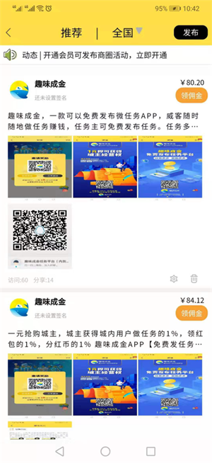 趣味成金简称是一款类似众人帮的任务悬赏平台,但是它又是一个基于LBS的集任务悬赏 红包营销 转发赚钱 城主模式 平台分红五大赚钱功能的综合平台。成为自己在本地的城主就能享受获得城内所有用户做任务收益的1%,抢红包收益的1%,分红币收益的1%,以及平台的利润分红。