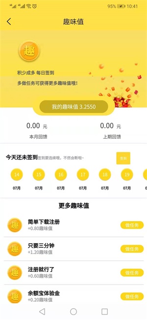 在趣味成金,用户可以通过做注册,做微任务、邀请、成为城主等方式获得更多趣味值。