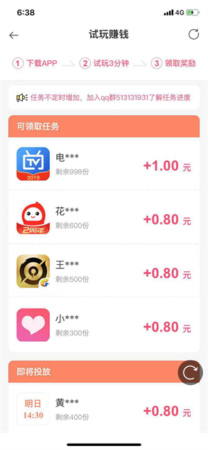 赚点钱,最新ios专业试玩赚钱平台,多种赚钱方式,试玩、收徒、游戏都有奖励。新手专享任务1元,日常试玩任务0.8元起。还可每日签到领红包。