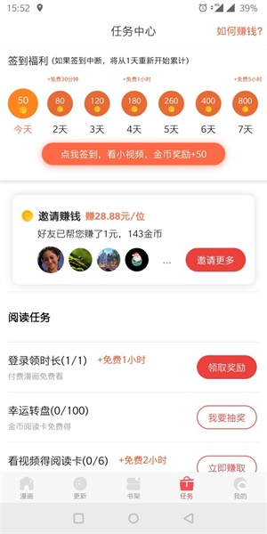 同时,抖腿漫画APP是一款“哪怕你没时间使用,也可以让你躺着赚钱”的漫画APP。只要你拉来的有效用户参与了任务,你就能分取好友阅读所获的20%金币收益。