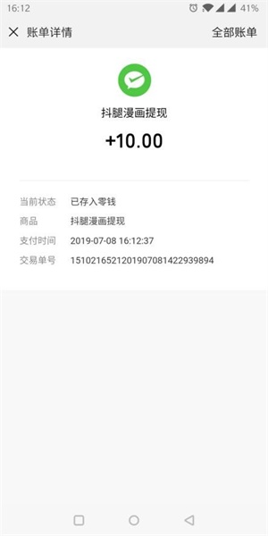 手赚类APP相较,抖腿漫画APP最大的优势是“机器审核,提现秒到账”。只要用户达到一定金额,申请体现,后台机器人会迅速进行批示,让用户尽享舒适体现体验。