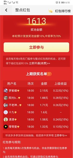 我给大家算算,他家抢红包一般最低一个月用户都可以抢到100以上,好的都是200多。就拿100为例吧,你要是会员,那你在这个下级身上就可以拿到15元,还不算任务奖励,下级有100个抢到100元,你就到手1500了。