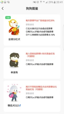 手机赚钱小游戏,两个相同等级的宠物狗合成更高等级的宠物狗,我们在其中就可以获取收益啦,有人会问平台收益的来源在哪里呢,如果平台没有收益来源,又怎么会给我们钱呢(毕竟俺们普通老百姓可不认识什么慈善机构啊)。
