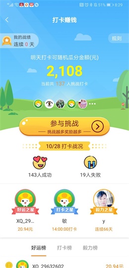 新人注册即送1元打卡体验金,免费参与打卡,完成打卡也可以瓜分奖金。只要坚持,持续参与,每个月都可以赚点话费钱。