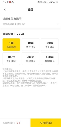 6、1元可提现,提现秒到账