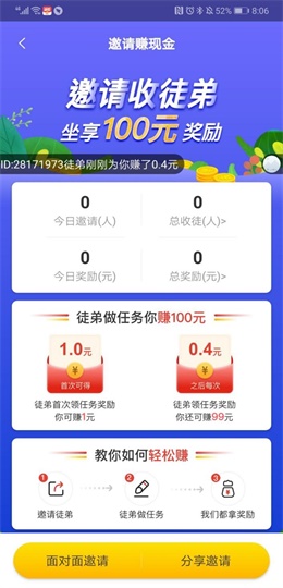 5、邀请徒弟,坐享百元奖励