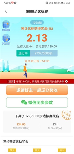 步数达标赛,每天只要完成5000步,即可轻松瓜分奖金。