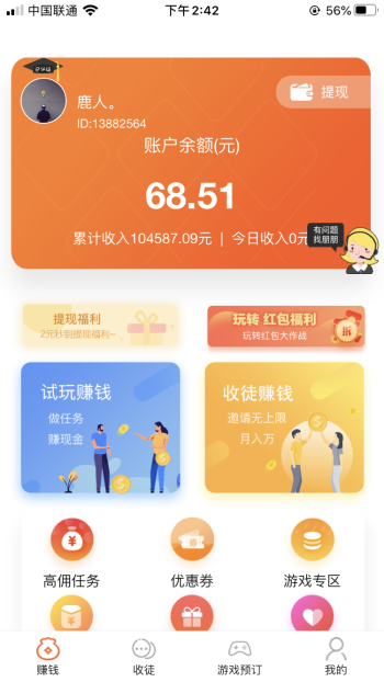 一.下载赚钱单价1元起,每天下午3-5点更新大量试玩任务