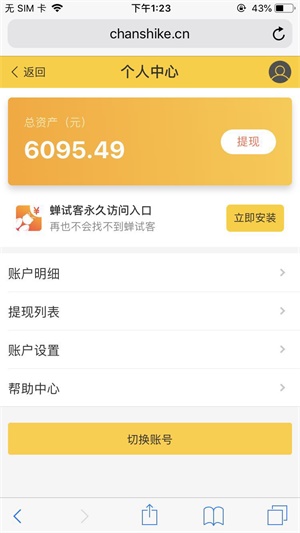 3.蝉试客余额最低10元,即可申请提现,一个工作日秒到账!!!