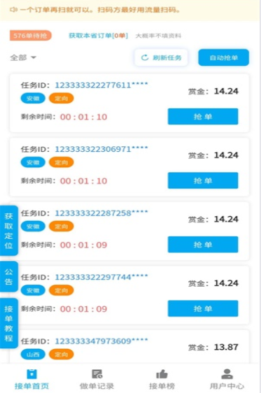码力辅助,辅助平台任务单价15元左右,每天都有大量的任务,打开主页点击抢单,或者自动抢单,完成微信辅助注册任务后,账户立即赚15元左右,轻松日赚100元。