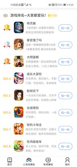 3,平台有小游戏赚钱,各种有趣好玩的游戏,可以选择手机喜欢的游戏试玩赚钱,可直接点击进去,就可以试玩了,平时喜欢打游戏的朋友一定不要错过,