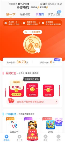 小啄赚钱:啄一啄,开始赚钱,新人注册会有更多的任务奖励,主页任务赚钱任务较高,支持安卓和苹果设备,目前小啄赚钱在同行中收益最高的,小啄赚钱提现无门槛秒到账,小编亲自体验过,最低1元即可快速到微信钱包,邀请好友赚的更多,让好友帮你产生更大的收益,赶快加入吧!