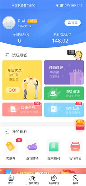 1,新用户支持送1元奖励红包,任务单价在0.8-1元起